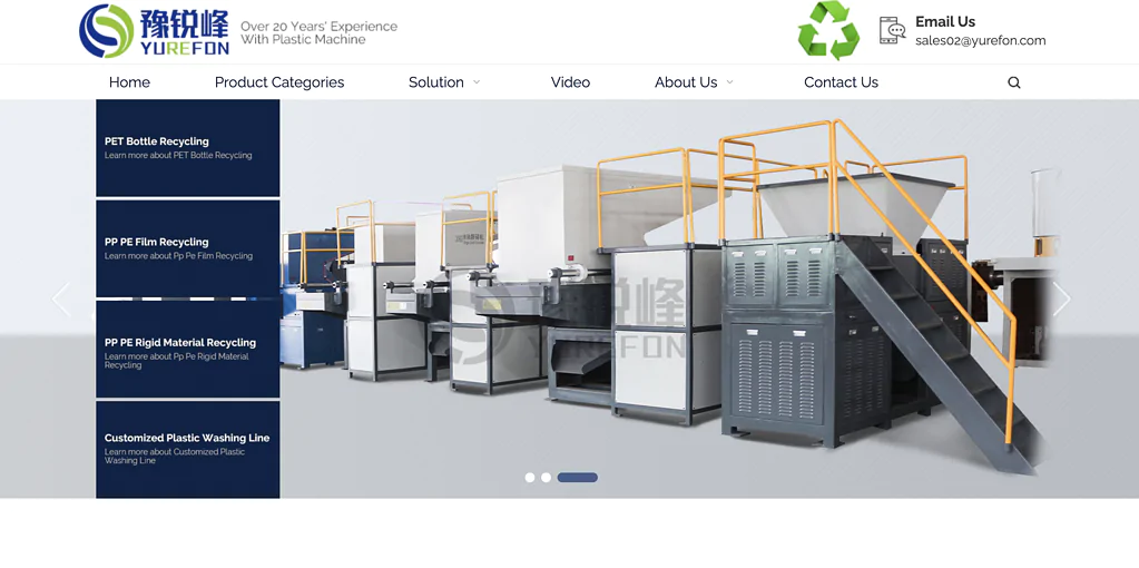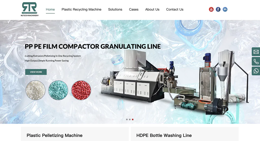 - Other Products: Washing machine, Plastic pelletizing machine, Plastic shredder machine, Plastic pipe extrusion machine.