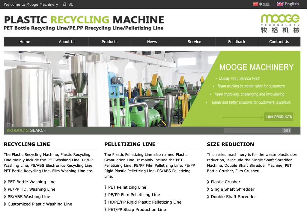 MOOGE MACHINERY Co., Ltd is a well-known and competent plastic recycling equipment maker based in Zhangjiagang, China. They are extremely committed to the development and creation of high-tech plastic machinery.